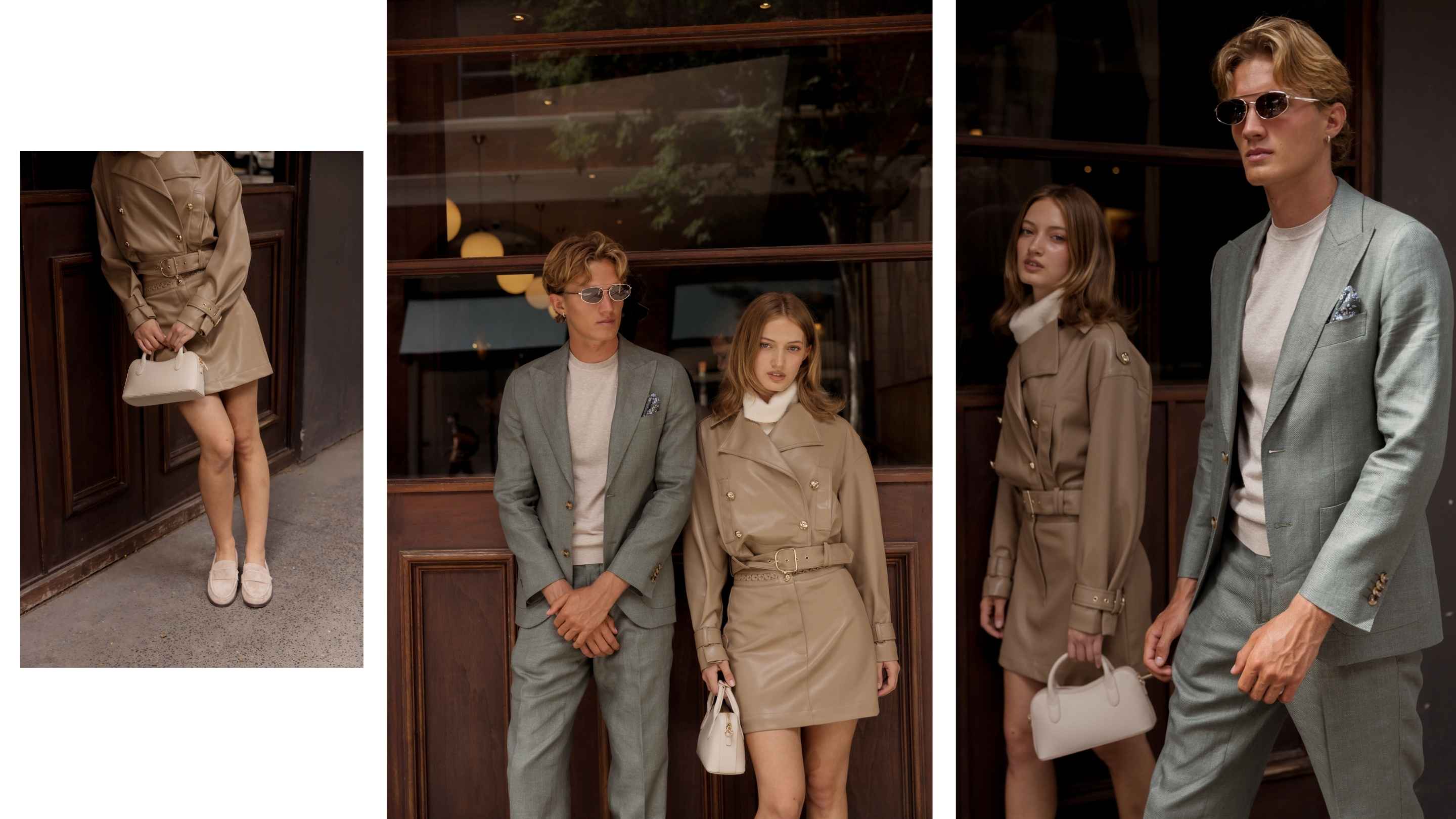 Tailoring continues to hold its place this season, but it’s softer now. Silhouettes are relaxed, fabrics have movement, and the overall feel is less corporate, more wearable. A structured mini trench from Sheike paired with loafers for her or a relaxed suit styled with a knit tee from M.J. Bale shows for him how easily tailoring can move between occasions. It’s that balance of structure and ease that defines Autumn dressing right now, pieces that hold their shape, but never feel rigid.
