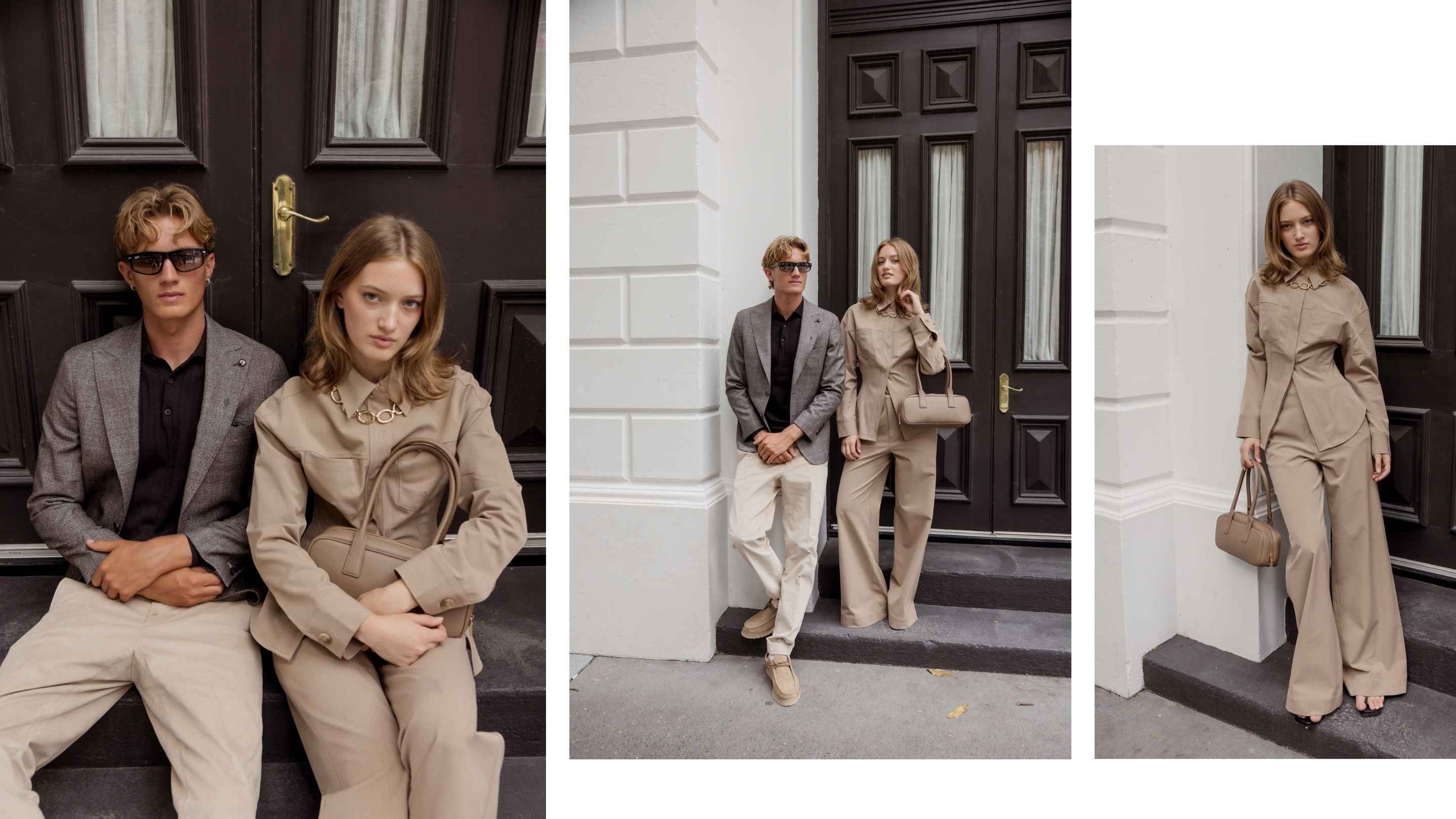 Neutrals take on a stronger role too, moving away from soft and understated into something sharper and more defined. Matching sets in warm beige tones, paired with clean accessories from Seed Heritage and minimal styling, feel confident without being loud. There’s a clarity to these looks, nothing is overdone, but everything feels intentional. For men, layering contrasting neutrals from Zara adds depth without complicating the outfit, creating a sense of balance that feels modern and easy.